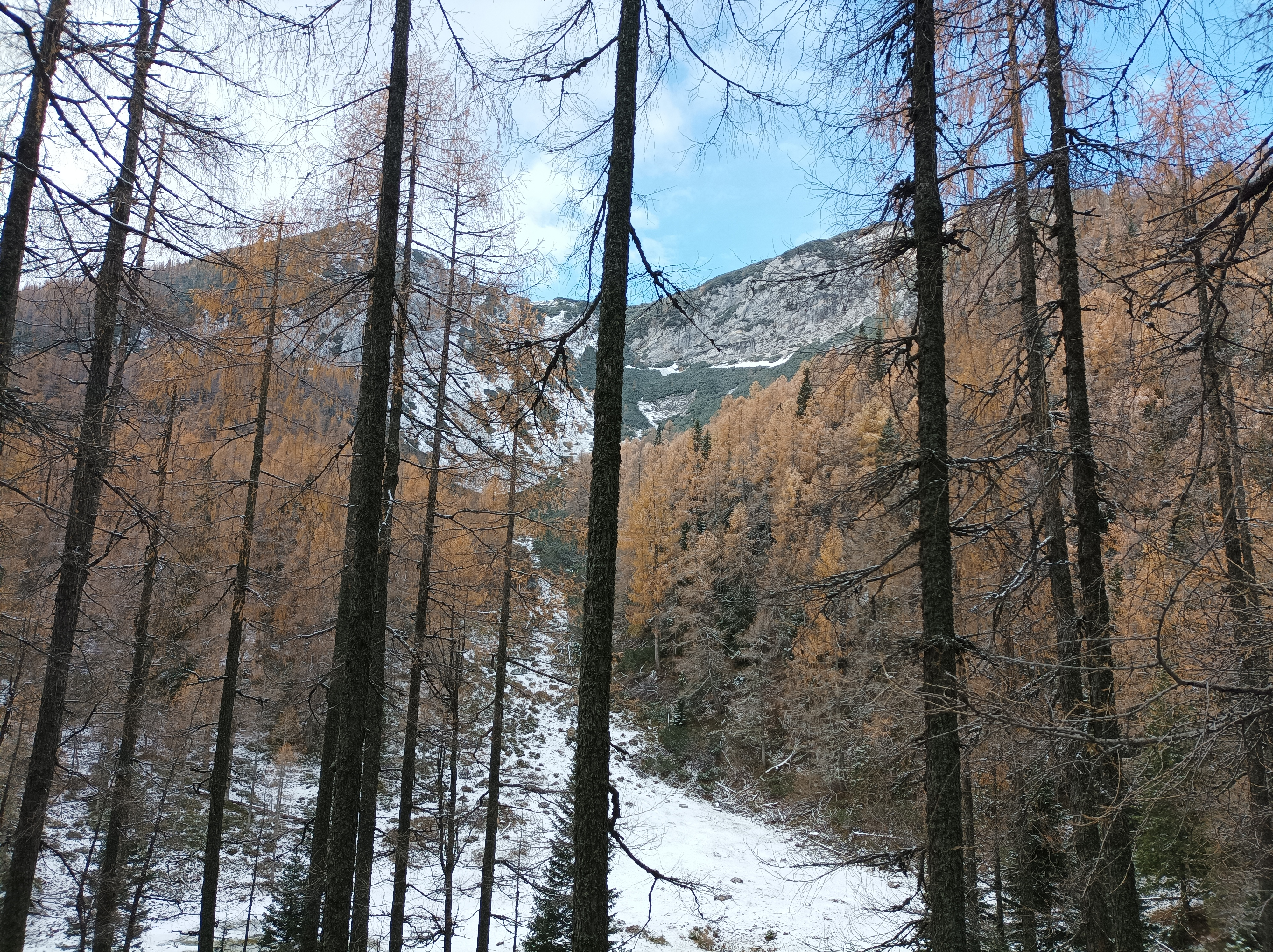 | malo nižje so macesni še bolj žarečih barv |